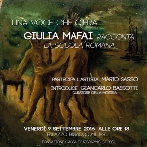 Nell’ambito della mostra: “La Scuola Romana, da Via Cavour agli anni ’50”, visitabile presso Palazzo Bisaccioni fino al 25 settembre, la Fondazione Cassa di Risparmio di Jesi ospiterà, Venerdì 9 settembre alle ore 18,00, Giulia Mafai terzogenita di Mario Mafai e Antonietta Raphael. Ci condurrà in un viaggio all’interno della Scuola di Via Cavour facendoci conoscere i fatti e gli artisti che ne hanno composto la storia.